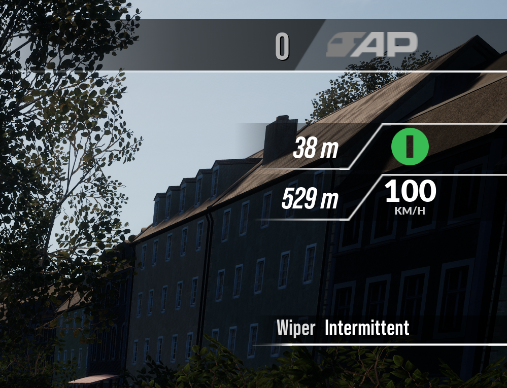 Below the AP, next sign and speed limit, it says Wiper Intermittent in the bottom right to confirm that you pressed the Wiper Increase shortcut in a DB ICE3 two times to get to that setting value.