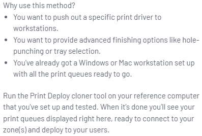 The actual problem starts after you captured the printer(s) from the reference computer you carefully prepared earlier and now want to deploy them to your users. You defined the Zone settings the way you want and also already installed the Print Deploy software clients on your devices.